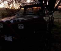Alright folks, let's try this again with some updates. I figured Amazon pictures would work as a host for my pics, but I guess not - oh well, continuing this thread with Photobucket!: This is what I started with: the vehicle was just a pretty stock manual XE model. It had some pretty bad rust spots on the rockers that needed to be re-worked. Thought about buying just some slip-on rockers, but decided that it would be good to have a little experience with patch panels. As you can tell, the rust wasn't HORRIBLE, but it definitely needed to be repaired. Once everything was welded up, I used some paintable caulk to seal the gaps between the rocker and the fender. And same thing on the driver's side (featuring some fiberglass filler): I had to sand the hood down to metal (practically everywhere), as the rock chips had started light rusting: I bought some new rims for it. Just some standard Chevy six-lug rims, wrapped with 33's. These were the tires that came with the rims. Super worn out, so I decided to get some new rubbers. I went with a 32x11.5 tire, in hopes that it would fit under the fenders a bit better. I love how tiny the stock wheels look compared to the 33's. Ha! And the new tires (featuring my ominous shadow): Next up was the painting process. Yes, I painted this in my driveway. Definitely a 'redneck' way of painting, but I think it turned out pretty well! Used a House of Kolor primer/sealer, and painted the inner door jams and inner doors first: Once the "interior paint" was done, I put the doors back on, and put everything relatively back together so that I could focus on exterior paint. Again, primed/sealed the body with the HoK and used TCP Global Ginger Metallic for the single-stage enamel. I highly recommend that paint. This is the second time I've used their paint, and have had absolutely no complaints about them (though I often am found complaining about the guns or some dust - or in this case, a wasp - that found it's way into the paint): Once the paint was on, it was time to focus on sound. Replaced the stock 5x7 speakers with CT sounds speakers. The head unit was replaced with a Pioneer MVH-S310BT Bluetooth stereo (so that I could jam out to some AC/DC and Dynazty on Spotify, of course). I did a professional wire kit (none of this through-the-fender-and-doorjam bs) and slapped my old Sony sub paired with a Volfenhag amp. It's an old setup, and isn't the loudest or proudest, but I still love that combo. I don't have many pictures of the sound system, sorry. After that, it was time to move on to coating the frame with POR15 paint. I should have taken pictures of myself on this one, because it was a sight to behold. Let me tell you something: that POR15 will take a layer of skin off if you try to peel it off too soon. Which is very problematic when you get it on your whole body (including face). Highly recommend that stuff, but highly recommend not getting any on you or anything you don't wish to be permanently black. Once all that was done, I moved on to getting the wheels/tires. sandblasted and powdercoated (charcoal grey) the rims. That was a miserable experience. I highly recommend taking items in to be sandblasted. I had sand in crevices on my body that I didn't even know I had. And once those were on, the fun began of mounting the bumpers. The rear bumper was no problem. The front bumper, though, was a challenge. The 3" bumper relocation brackets that were sold in the kit had to be fairly heavily modified in order to fit. Oh well - that's part of the fun, right? I also fabricated a new rear license plate holder, as the old one wouldn't fit with the bumper and lift kit. And one of the final steps I had was the shift boot. As you all are probably well-aware, the stock boots don't work well with a lift kit. So to remedy this, I bent the 4x4 shifter, but left the manual shifter as is. I originally thought I could use a larger sewn boot (3rd picture) and tuck under the carpet. However, that looked a bit ridiculous, so I went a different route: cut a diamond plate sheet and bent it to match the curvature of the well. I then sewed the shift boot from faux gator skin, used a screw-in grommet on the top (as a finisher), and bought some new knobs. Behold, the shift boot shenanigans: And last but not least: the graphics. I owe a huge debt to my dad who helped me with some of the cutting/designing of the graphics. The back part (where it is flat at the top) needs to be re-designed and re-cut, but overall it turned out pretty nice. We are also going to be doing a hood graphic here in the next few weeks: Some other mentions that may not be pictured: I highly recommend fluid film as a rust-preventative in the rockers and fender areas. It doesn't take but 5 minutes to pop off the scuff guards and spray some FF down into the rockers. Pretty easy. I also ordered stainless M6-1.0 16mm flanged bolts on Amazon for pretty cheap. I found it very beneficial to spray just a tiny bit of Fluid Film on the stainless bolts to ensure nothing is getting rusted/stuck. I broke about 50,000 of the old bolts off, simply due to rust, age, and over torque from previous work. Next on the to-do list for this vehicle: headers/exhaust, roof basket rack, and steering components (I have new inner/outer tie rods, centerlink, and some other goodies coming in the mail in the next few days). And that's about it, folks. I have about 300 hours of cutting, welding, sewing, cursing, pleading, and some good ol' quality dad/son time into this since March. I hope you all enjoyed! Let me know if there are any questions or if I can help with anything.